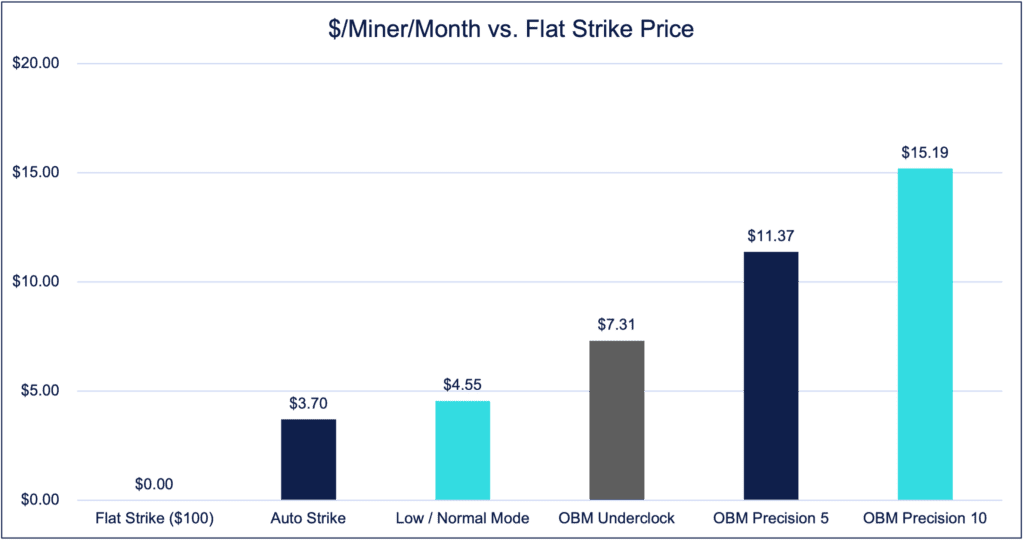 The default in most mining operations is a single, flat strike price applied to the entire fleet. It is a practical choice because calculating accurate, per-model strike prices is operationally difficult without the right tools. But choosing a flat strike price is likely limiting your site’s income.